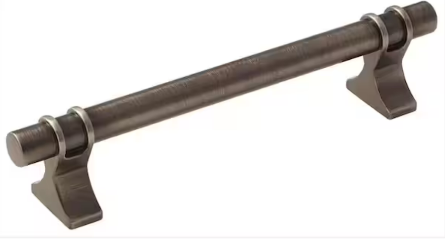 The Amerock Davenport Pull offers a more subtle industrial look with bold curves. Its gunmetal finish is a great complement to stainless steel appliances.